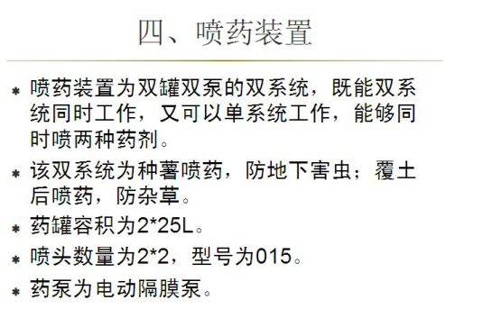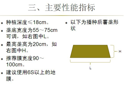 ① 該馬鈴薯種植機適用于土壤含水率20%以下,且耕整后較平整、無石塊、障礙物的地塊種植作業。