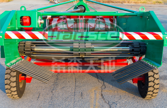 分離清選后的馬鈴薯輸送到機器的后方,通過調整集條擋板的寬度,將馬鈴薯鋪放在地面上,以便撿拾。